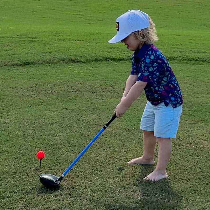 After gathering valuable feedback and testing with junior golfers aged 2-4, we proudly present the Lag Shot Baby Driver—a shorter, lighter, and more flexible golf club designed specifically for the youngest golfers, complete with a stylish blue shaft.